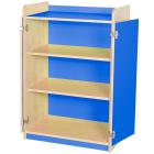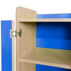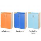 Features fold back safety hinges. Hinges for the cupboard door can be fitted on either the left side or right side. Optional locks for the cupboard doors can be included. Manufactured in a solid 18mm MDF maple finish with a 2mm bump resistant PVC plastic edge with a plywood finish. Available in 5 heights: 707, 792, 877, 962 and 1047mm. All are 706mm wide and 480mm deep. Available as standard in maple with a choice of 7 colour themes: lime, red, lilac, plum, jaffa, blue and powder blue. Features adjustable shelves. Includes a 10 year guarantee.