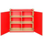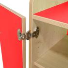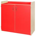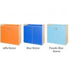 Features fold back safety hinges. Hinges for the cupboard door can be fitted on either the left side or right side. Optional locks for the cupboard doors can be included. Manufactured in a solid 18mm MDF maple finish with a 2mm bump resistant PVC plastic edge with a plywood finish. Available in 5 heights: 707, 792, 877, 962 and 1047mm. All are 1050mm wide and 480mm deep. Available as standard in maple with a choice of 7 colour themes: lime, red, lilac, plum, jaffa, blue and powder blue. Features adjustable shelves. Includes a 10 year guarantee.
